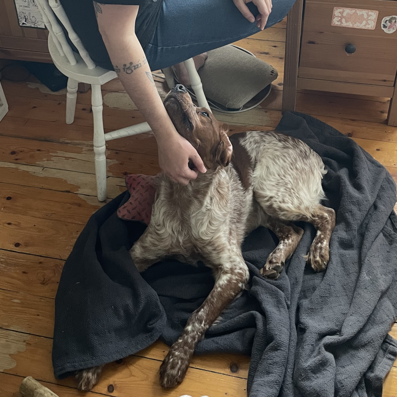 Je repense à mes propres blessures sportives (dont ma fracture du radius l'été dernier) et à mes problèmes de santé en général. C'est une leçon qui s'applique autant aux humains adultes qu'aux chiots : lorsqu'on est fatigué, sous-estime toujours tes capacités et ta coordination ! Et, en cas de chute dans les escaliers, par exemple, l'ingrédient le plus essentiel de la guérison est le repos. Il m'a fallu beaucoup de temps pour vraiment apprécier ces leçons, et les petits imprévus dans la vie me rappellent continuellement leur importance. Dans les prochains jours, Leif et moi garderons notre attention sur Pippin, qui se sent déjà visiblement beaucoup mieux aujourd'hui, et je vais aussi réfléchir à comment accorder une plus grande importance au repos en 2024.