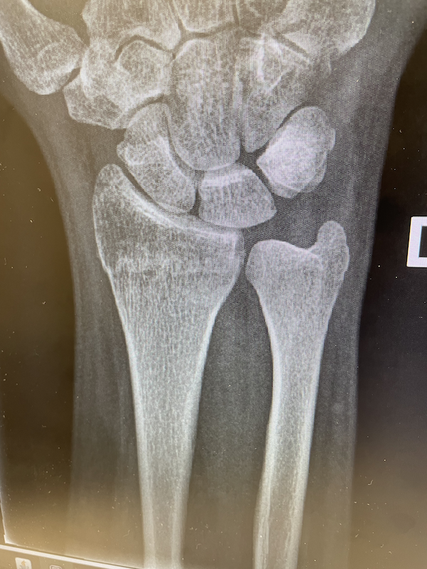 X-rays taken on September 6 2023 show that the bone is looking a lot less broken, but a lateral view shows that it hasn't yet finished putting itself back together yet, as there is still a rather large gap under my wrist.