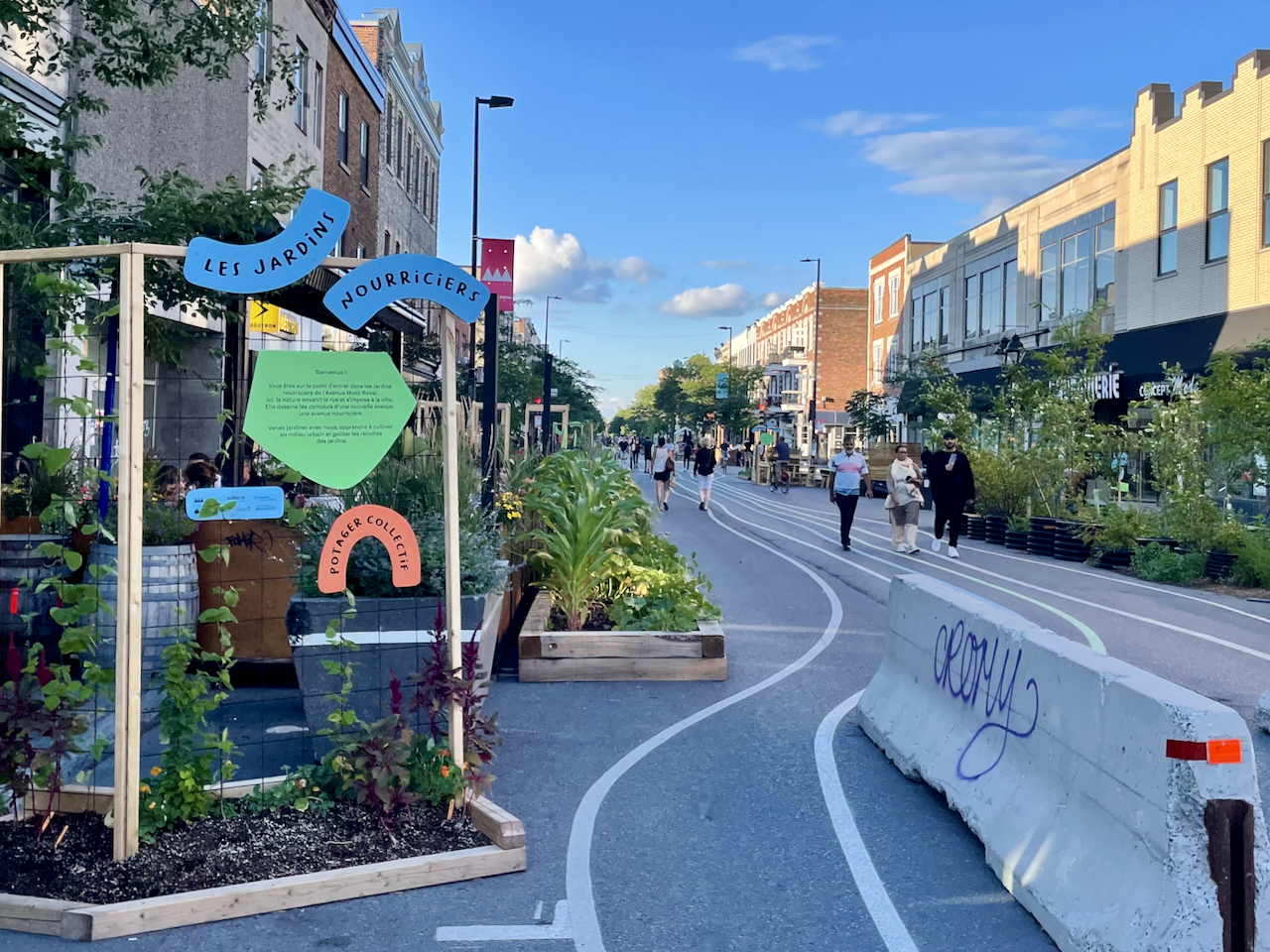 L'avenue Mont-Royal a mis en place une superbe initiative pour verdoyer l'espace piétonne/cycliste qu'est l'avenue pendant la saison estivale. Un jardin ouvert et comestible a été emménagé sur la rue, recueillant toutes sortes de plantes aromatiques et de fruits et de légumes. Les jardins nourriciers sont sous la gestion d'Humanicité, un groupe d'étudiantes de l'Institut national d'agriculture biologique du Cégep de Victoriaville et de l'École de design de l'UQAM, avec l'accompagnement de Fertiles et le réseau multisectoriel d'agriculteurs urbains Cultiver Montréal.