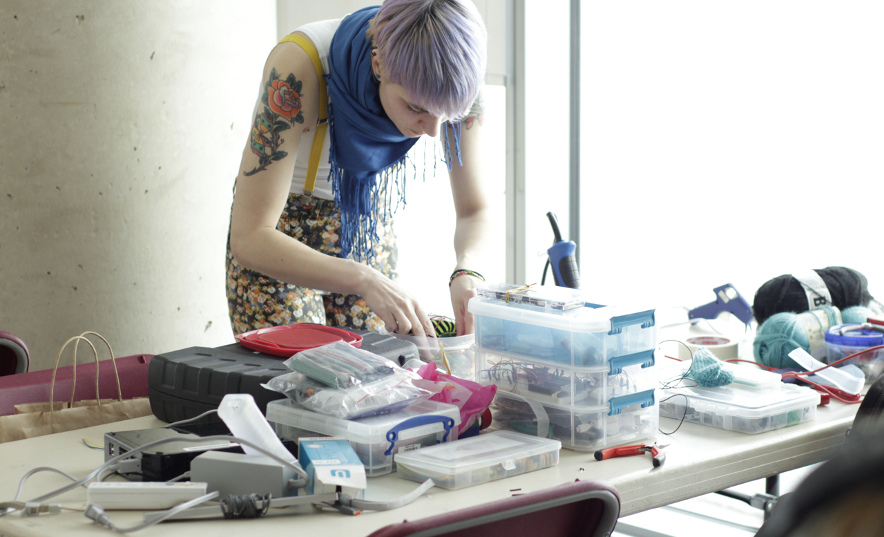 The challenge: in less than 48 hours, construct a videogame or "alternative/augmented reality" game combining wearable tech hacks, technology of any kind, and traditional or modern game mechanics. With a myriad of options ahead of us, Jessica Blanchet and I knew Friday night what we wanted to do. We wanted a game to honour Leonard Nimoy. My first thought was to make Vulcan ears - perhaps out of a mold, or even with Jessica's power of crochet? Jessica immediately thought of using the body as a circuit, and using Spock's classic Vulcan salute as a mechanic. And thus a controller mechanic was born in the minutes before the jam even properly started on Saturday morning!