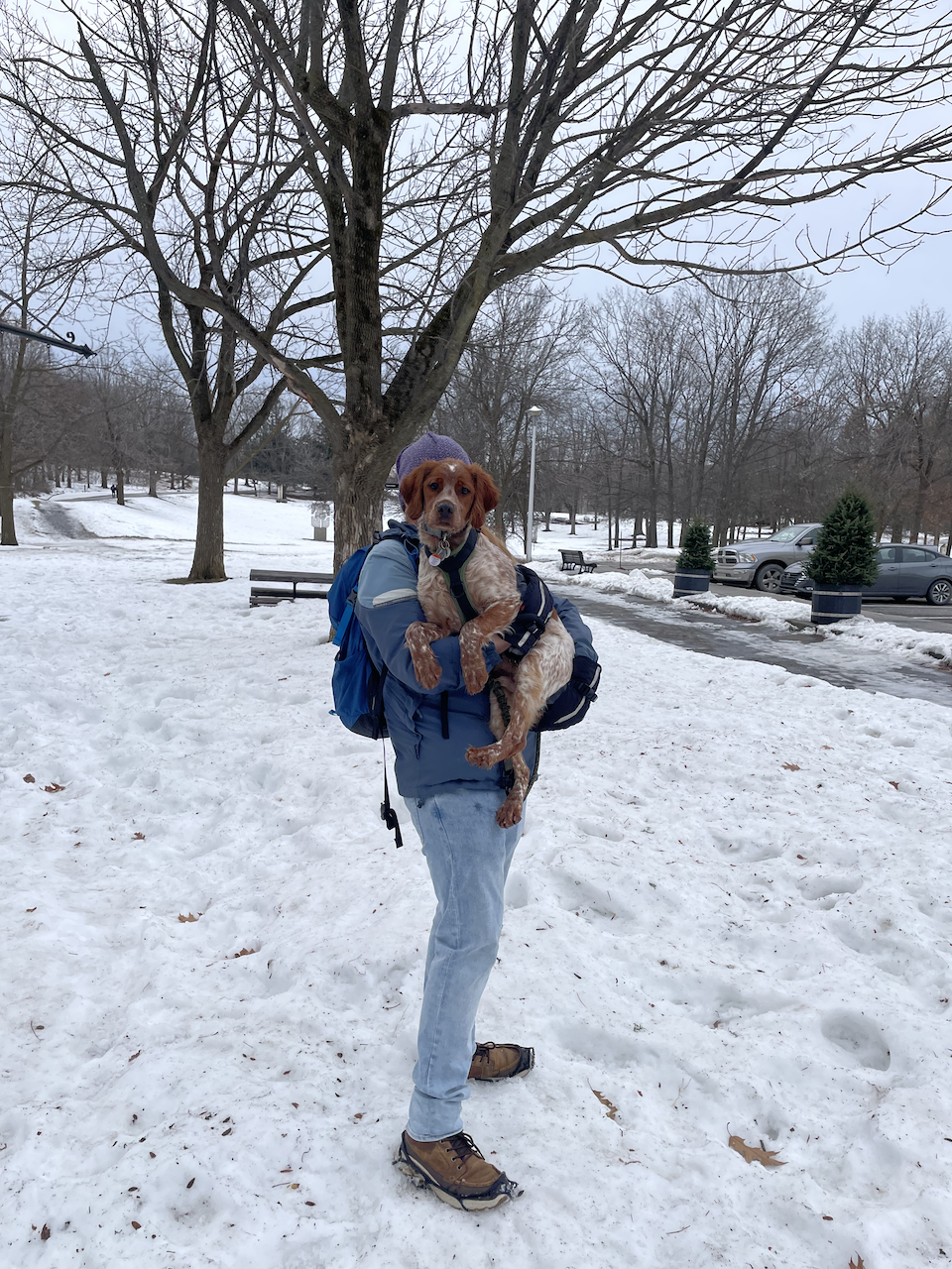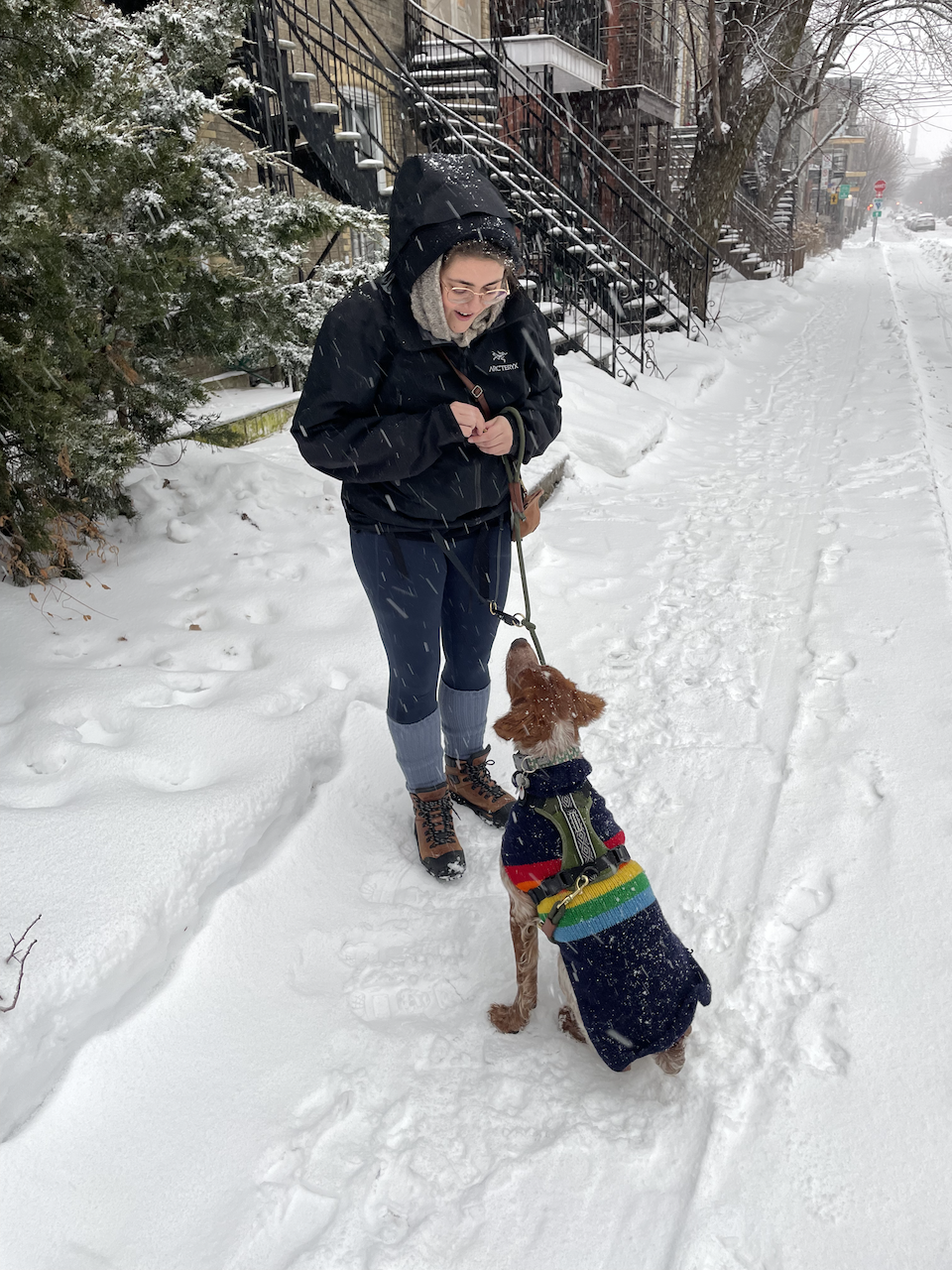 January 27 2024. A selfie after walkies on the Mont Royal.February 11 2024. Pippin was having a grand old time frolicking on the Mont Royal with Leif and I.13 February 2024. Pip is pointing at something I cannot see (or maybe just a really exciting stick?) while we went frolicking in the woods.
