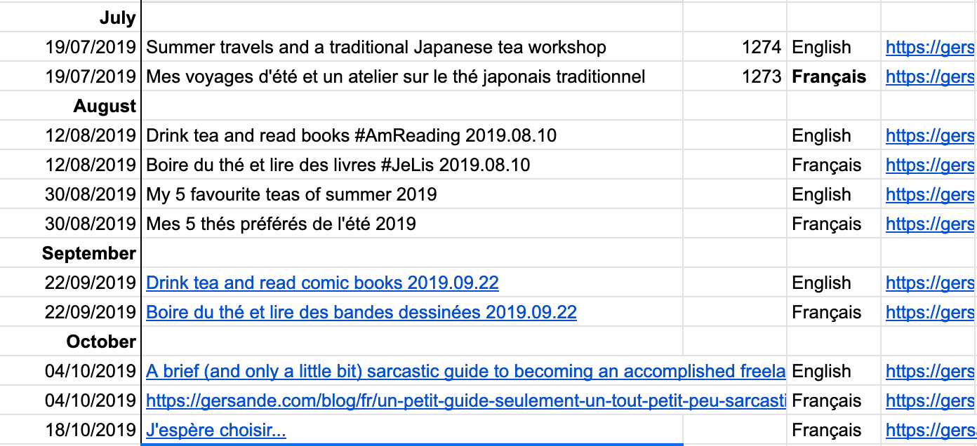 What was also really frustrating for me was that my blog was in English. At the end of 2018, it was starting to look like my work-work practice was leaning more and more towards translatio, localization and copywriting in both languages. It was so frustrating that I was feeling such stage fright writing in French under my own name for the world wide web when having a bilingual blog is such an easy way of demonstrating a minimum of ease in both language.