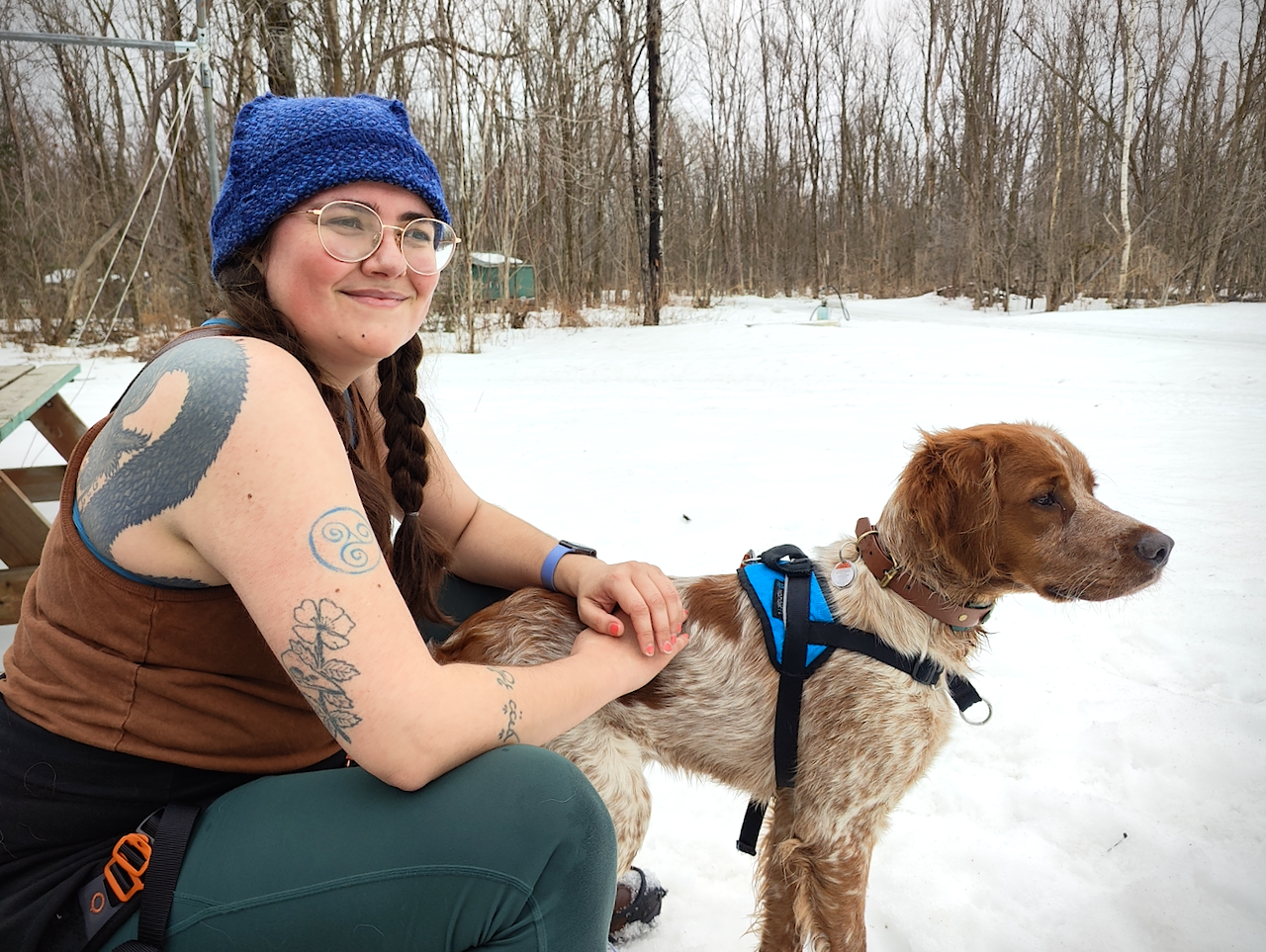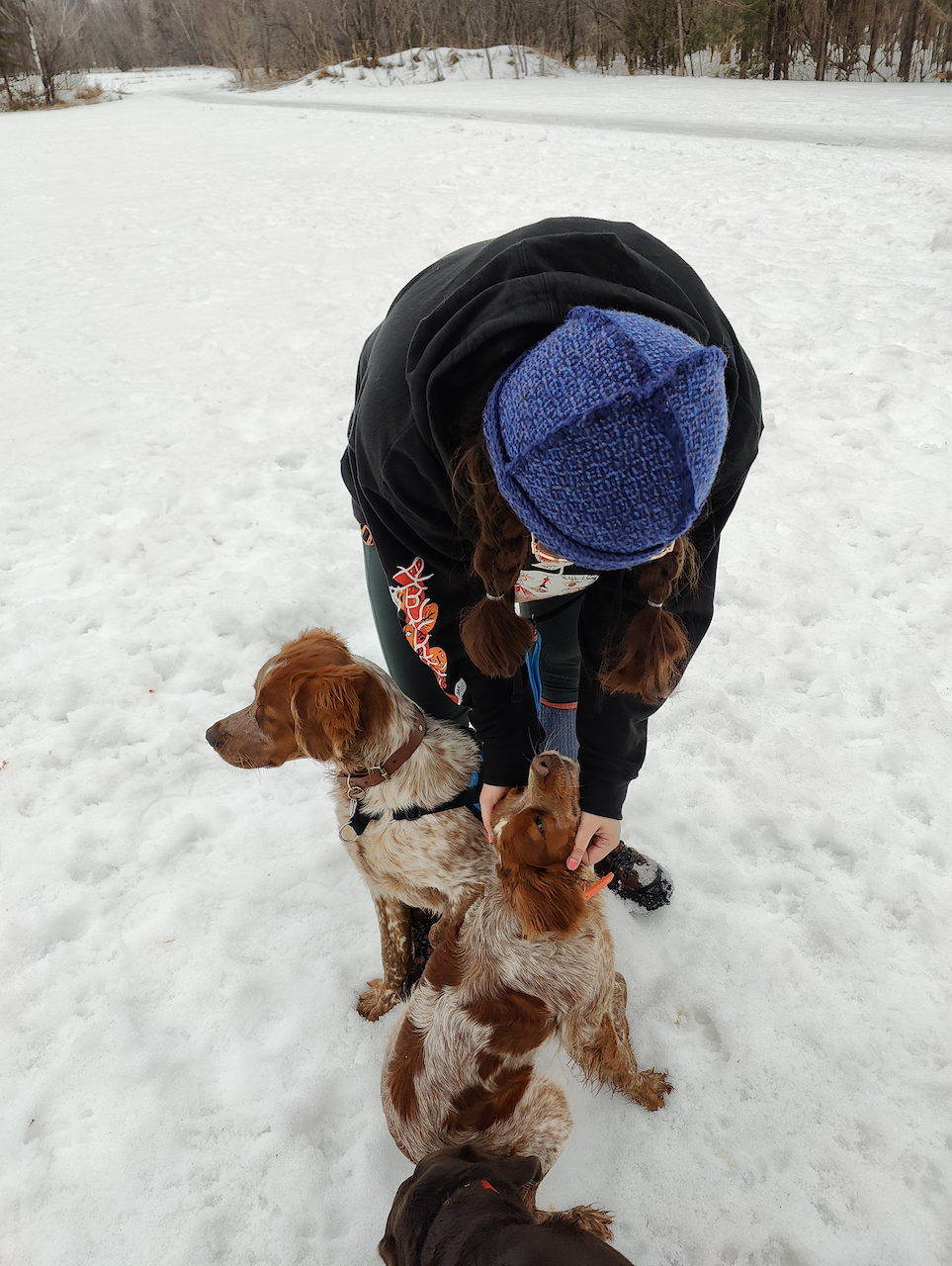 Depuis que Pippin est arrivé chez nous et depuis que je reprends des cours à l'UQÀM, je passe nécessairement moins de temps à m'entrainer et à danser du ballet. Ça fait vraiment du bien de faire un peu d'effort (en tout, ma montre m'informe qu'on a couru au moins 5 km, peut-être un peu plus), de le faire avec Pippin, et que l'expérience sur place n'a pas été difficile ou anxiogène. On a été très chaleureusement accueilli au CEB, et quelques autres participantes nous ont même aidées à dégager notre petite Fiat d'un banc de neige (ahh, les aventures de mini char en campagne québécoise!)