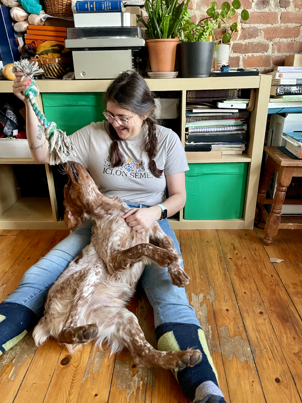 En plus de tout ça, je continue de travailler sur ma communication et mon rapport avec Pippin (en plus de ma lecture de Force-Free Gundog Training de Jo Laurens, je suis également un mini cours sur le rapporte par Liza Rader de Focus Dogs). Dans la vie quotidienne, hors du contexte sportif, Pippin a développé une légère anxiété autour des hommes inconnus qu'on croise dans la rue: le résultat de plusieurs expériences avec des hommes sans gêne. Leif et moi-même travaillons fort depuis le début pour donner à Pippin un sentiment de sécurité quand il est avec nous, à la maison ou dans le monde. On va lui rebâtir sa confiance, mais ça prend du temps et de la patience.